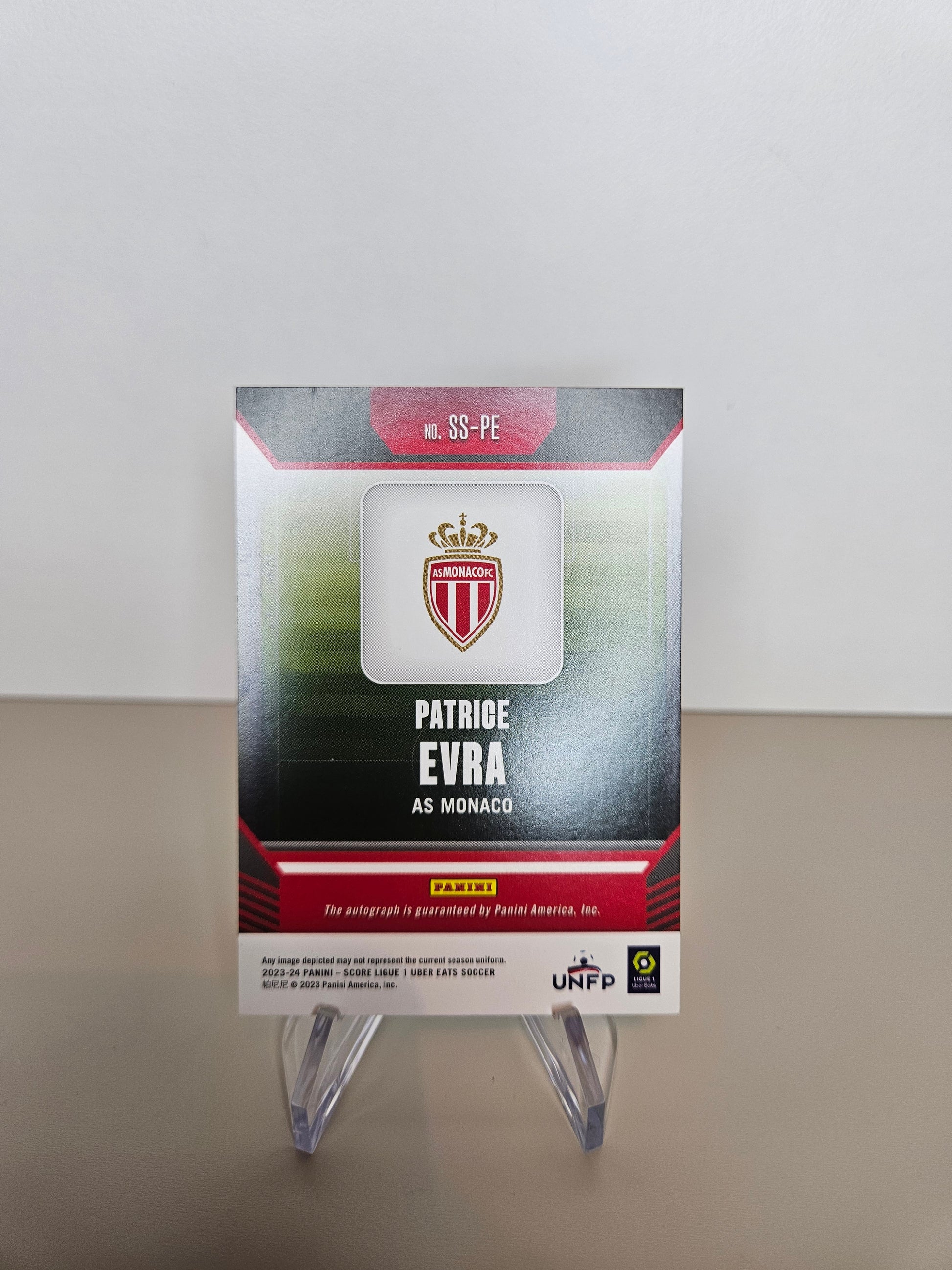 Carte de foot de Patrice Evra Autographe à Monaco sue 199 collection score ligue 1 panini