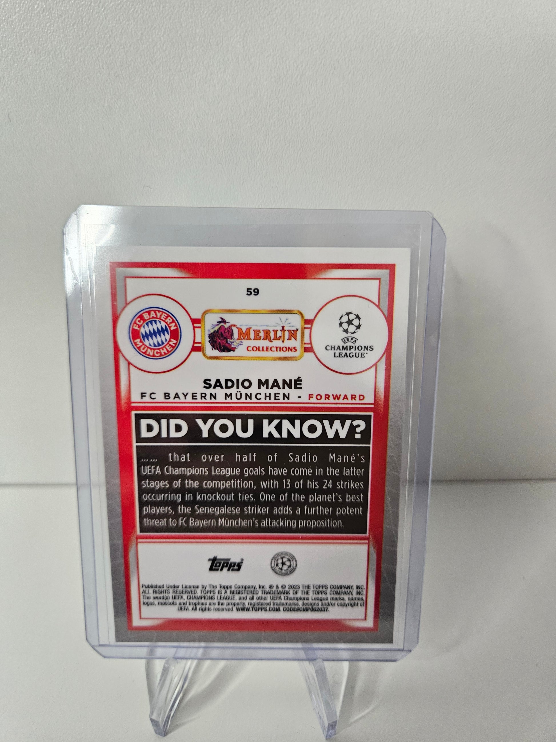 Carte numérotée Sadio Mané 215/250 Bayern Munich Atomic Refractor Topps Merlin